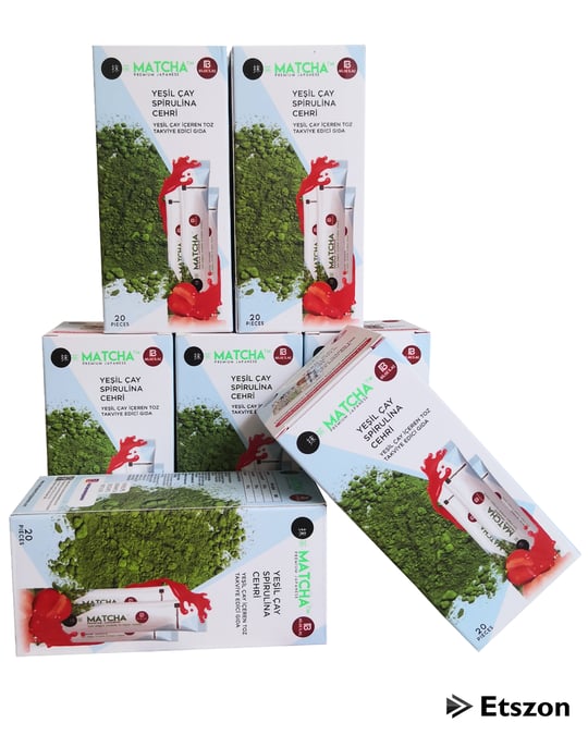 Thé Matcha aromatisé à la fraise 20×10-8gr Caractéristiques du produit Ingrédients : Thé vert (Matcha) 70%, Spiruline, Séné (Cinemaki), Arôme Fraise (Édulcorant d’Arôme) 1 Boîte – 20 Pièces x Châssis 10-8gr.